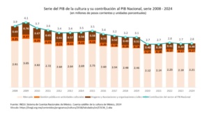 En esa perspectiva del PIB entre 2016 y 2024 el gobierno y la organización civil vio un incremento de poco más de 14 mil mdp, al pasar de 40 mil 349 a 53 865 mdp. El planteamiento es básico: ¿qué papel jugó la Secretaría de Cultura en el crecimiento del sector cultural? Para ciertos actores ha sido determinante; para otros es una competencia que la Secretaría de Economía no ha asumido. Lo cierto es que la falta de corresponsabilidad se heredó del Conaculta y siguen tan campantes.