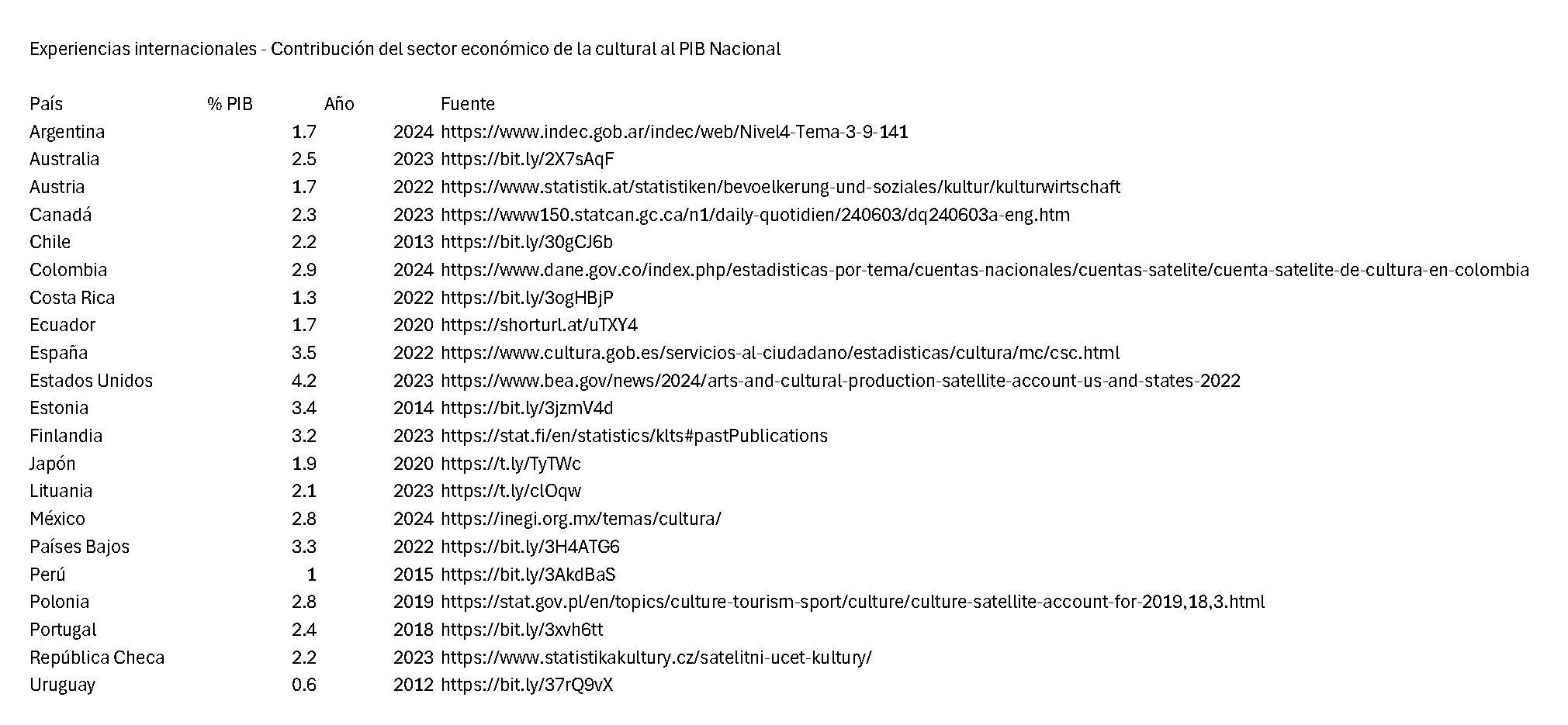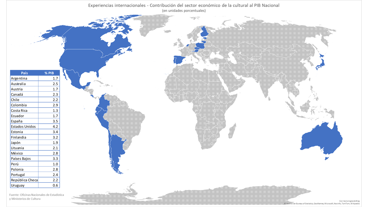 Gráfica 15: Experiencias internacionales – Contribución del sector económico de la cultural al PIB Nacional