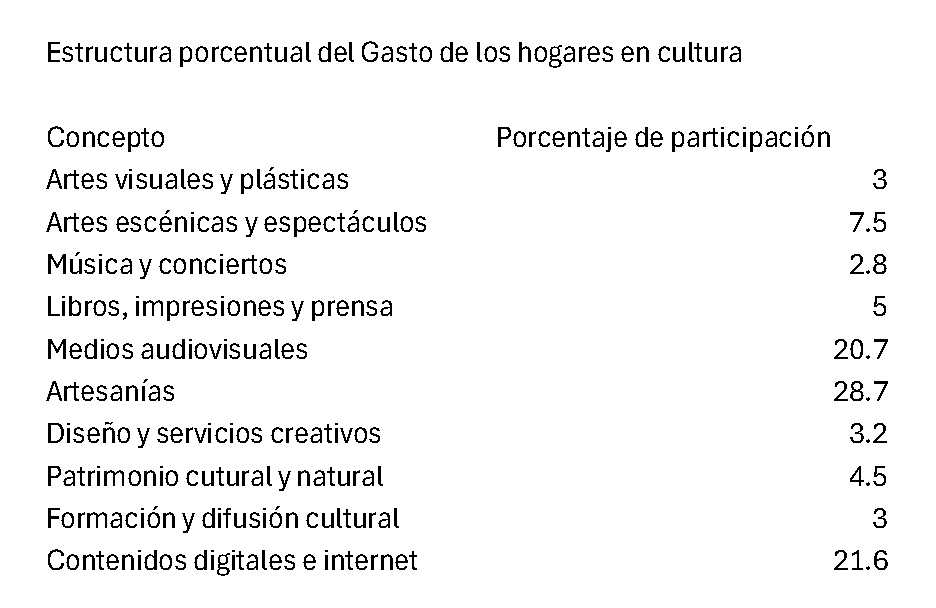 Gráfica 16: Estructura porcentual del Gasto de los hogares en cultura