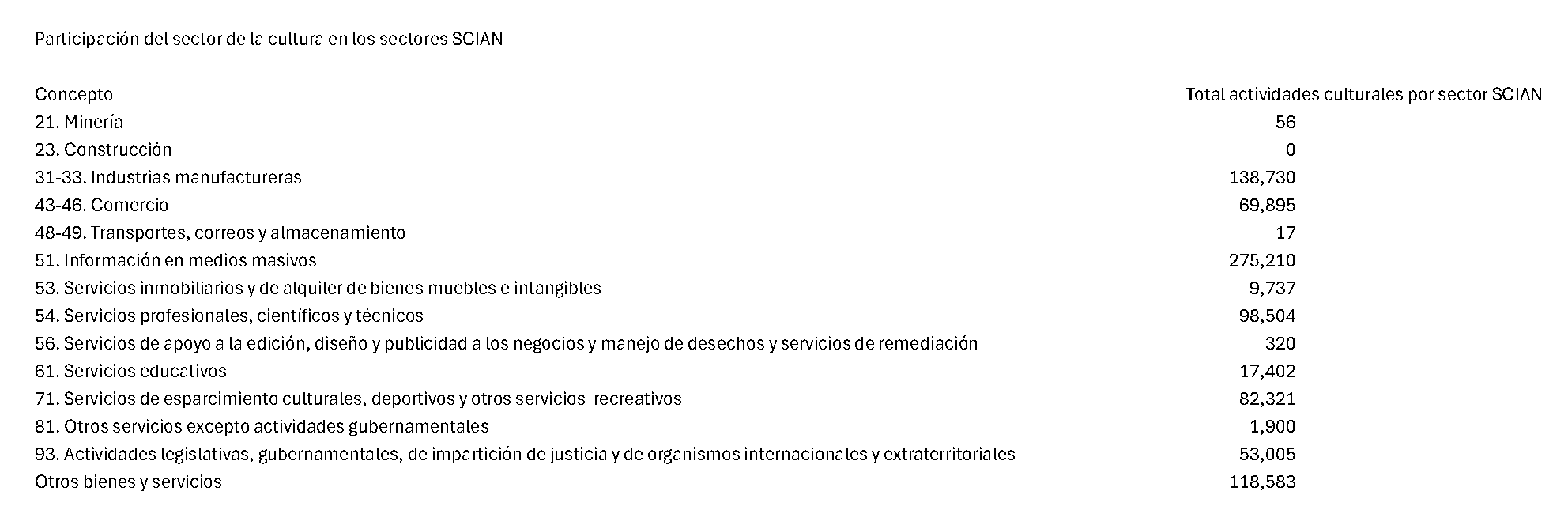 Gráfica 2: Participación del sector de la cultura en los sectores SCIAN