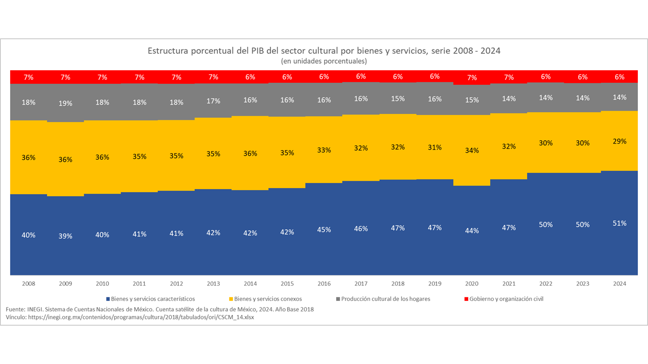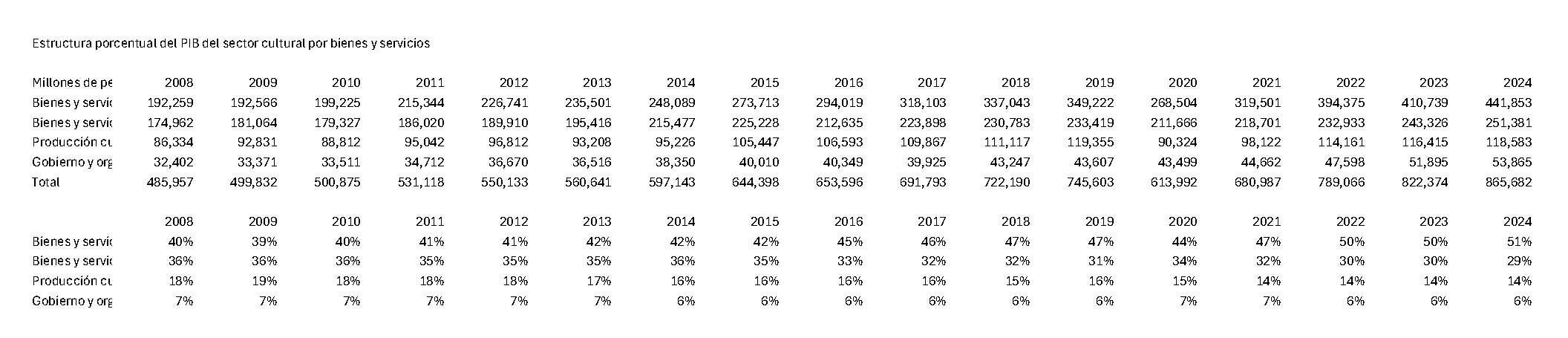 Gráfica 3: Estructura porcentual del PIB del sector cultural por bienes y servicios