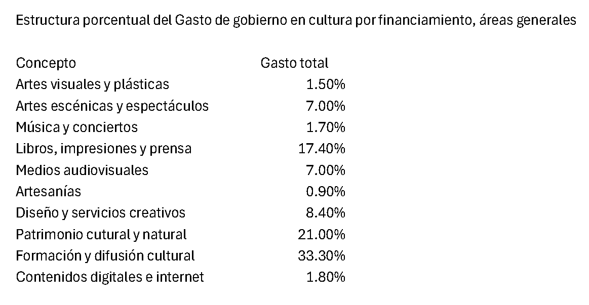 Gráfica 4: Estructura porcentual del Gasto de gobierno en cultura por áreas generales