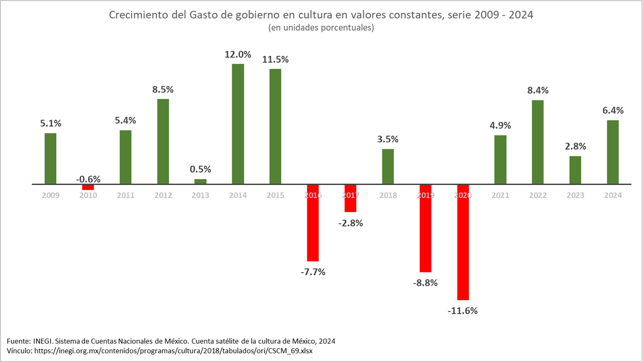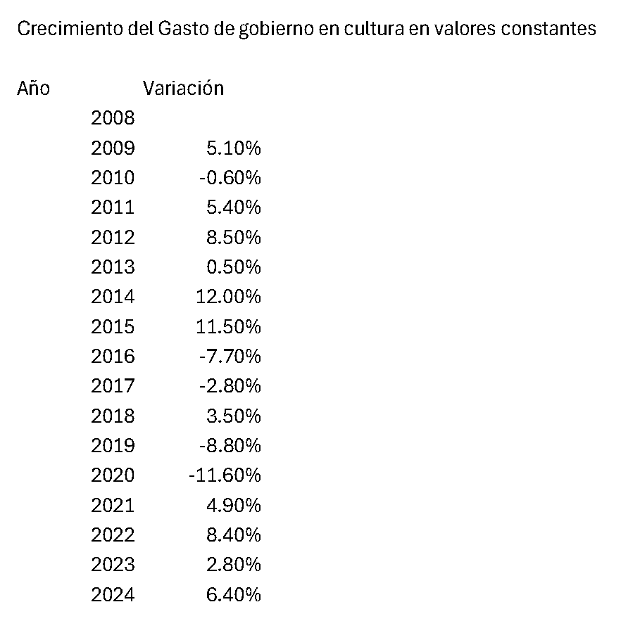 Gráfica 5: Crecimiento del Gasto de gobierno en cultura en valores constantes