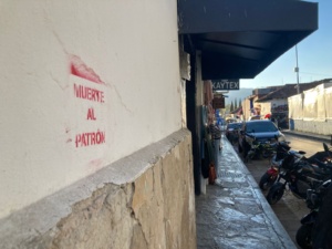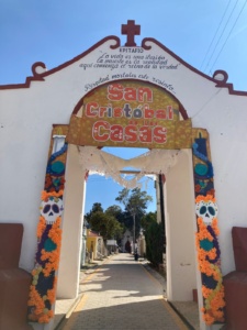 El acceso fundacional al panteón de San Cristóbal de Las Casas. Las fotografías y el video son del autor, datan del 25 de febrero de este año. La falta de ortografía ya llevaba semanas sin corregirse.