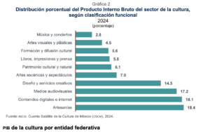 A estas desigualdades sectoriales se suma una fuerte centralización geográfica. La mayor parte de la oferta cultural se concentra en la Ciudad de México y Jalisco, lo que genera barreras de acceso para amplias regiones del país. Aunque existen especializaciones regionales —artesanías en el sur, contenidos digitales en el norte—, la distribución de infraestructura y recursos sigue siendo profundamente asimétrica.